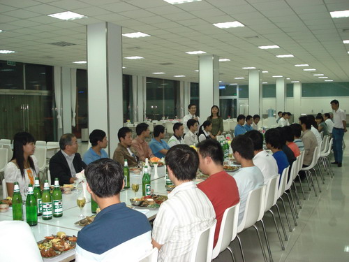 晚宴在輕快的音樂聲中舉行,總經(jīng)理孫龍平因公務(wù)無法前來,專門打電話表達了對員工的節(jié)日問候。公司董事長井上先生、常務(wù)副總鈴木先生先后致辭,表達了對員工節(jié)日的祝賀,同時談到了八月十五這一天,在日本也有全家人賞月的傳統(tǒng),故鄉(xiāng)的明月是所有游子魂牽夢繞的情。自助式晚宴進行得自由而輕松,員工之間頻頻舉杯,共敘友誼,并無多愁善感;人力資源部姜部長帶頭向員工一一祝酒,對員工的鼓勵溢于言表,整個餐廳觥籌交錯,其樂融融。