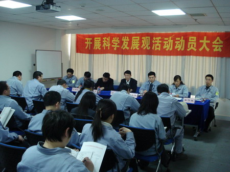 動(dòng)員大會(huì)由總經(jīng)理孫龍平同志主持。會(huì)上,首先宣讀了《關(guān)于成立公司學(xué)習(xí)實(shí)踐科學(xué)發(fā)展觀領(lǐng)導(dǎo)小組的通知》,荏原博泵黨總支副書記姜作棟同志宣讀了公司《深入學(xué)習(xí)實(shí)踐科學(xué)發(fā)展觀活動(dòng)的實(shí)施方案》,明確了各階段的任務(wù)要求和具體責(zé)任人,并公布了公司信箱、意見箱,鼓勵(lì)廣大黨員、群眾對(duì)公司開展好學(xué)習(xí)實(shí)踐科學(xué)發(fā)展觀活動(dòng)獻(xiàn)計(jì)獻(xiàn)策。