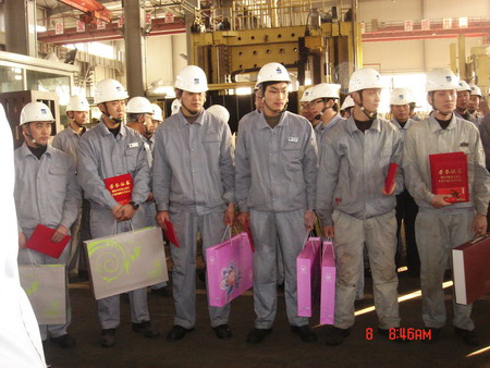 12月7日早上,利用晨會(huì)時(shí)間,公司召開了生產(chǎn)車間全體員工大會(huì), 分管生產(chǎn)的王興春副總和生產(chǎn)部部長(zhǎng)三森先生親自將高新區(qū)頒發(fā)的證書和獎(jiǎng)金以及公司為參賽選手買的獎(jiǎng)品一并發(fā)到他們手中,并鼓勵(lì)大家向他們學(xué)習(xí),認(rèn)真鉆研技術(shù),勤奮工作,為公司的發(fā)展做出自己應(yīng)有的貢獻(xiàn)。