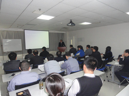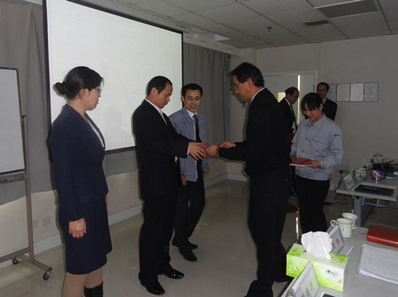 總經(jīng)理志賀進(jìn)先生在會(huì)上講話,并為在2011年度營(yíng)銷工作中業(yè)績(jī)突出的3名同志:高文旭、周潔、喬法彬進(jìn)行了頒獎(jiǎng)。