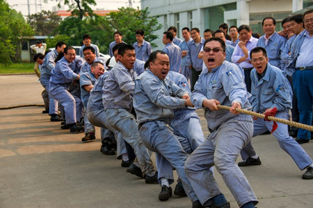 4月30日下午,公司工會舉辦的第八屆慶“五一”拔河比賽在辦公樓前舉行。