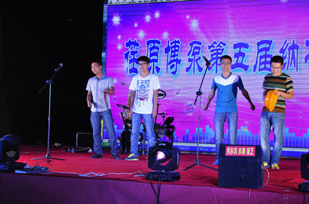 18:00,文藝演出正式開始,首先是搖滾樂隊帶來的勁爆歌曲,將晚會現(xiàn)場帶入了熱烈的氛圍。晚會上,有抒情懷舊的經(jīng)典老歌,有驚艷柔美的女工舞蹈,有激情四射的魅力街舞,還有新員工自編自演的三句半,更有抒發(fā)對公司深厚情感的詩朗誦《騰飛吧,荏原博泵》。有公司領(lǐng)導(dǎo)的獻(xiàn)唱,有普通員工的表演。每一個節(jié)目,都凝聚了員工的心聲,每一個節(jié)目都飽含了員工的熱情。在晚會上,公司常務(wù)副總經(jīng)理王正軍先生深情地說;今天是個歡樂的日子,荏原博泵歷經(jīng)八年的發(fā)展,從現(xiàn)在開始已經(jīng)步入了健康發(fā)展的軌道。今年公司訂單已達(dá)五個億,下一步就是生產(chǎn)、制造、交貨要交給在座各位,希望大家就像一臺機(jī)器的每個部件一樣,齊心協(xié)力配合好,公司的經(jīng)營成果會與大家共享!王總也一改往日的豪情,演繹了一首《風(fēng)往北吹》,表現(xiàn)了一個鐵血男兒柔情的一面。