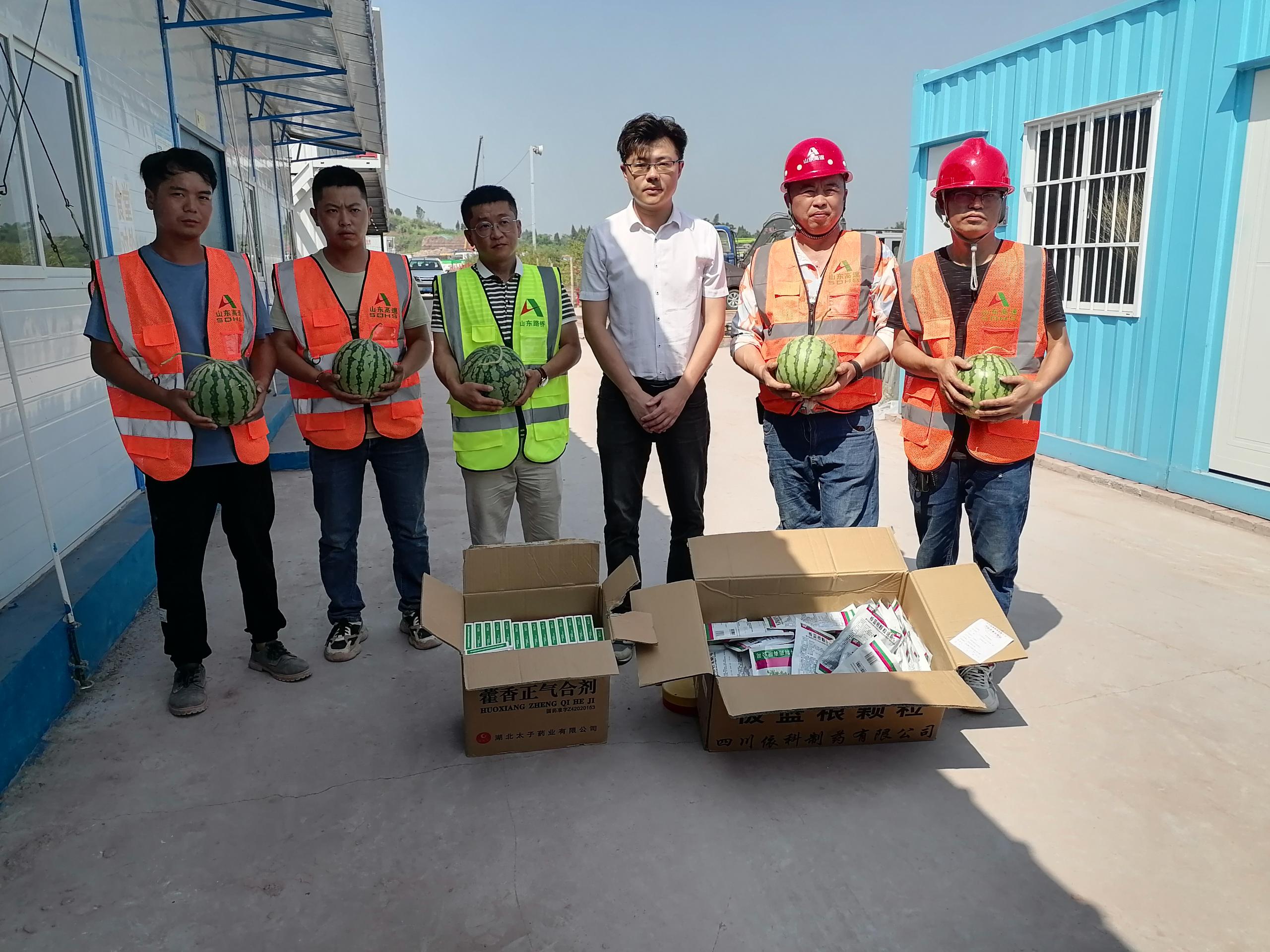 每到一個(gè)項(xiàng)目施工現(xiàn)場(chǎng),周士棠同志都深入一線職工當(dāng)中,與大家親切交談,親自將一個(gè)個(gè)西瓜,一盒盒防暑藥品發(fā)放到大家手中,細(xì)致詢問大家近期的生活情況和工作情況,實(shí)地查看項(xiàng)目進(jìn)展情況。了解到員工在近40攝氏度的酷熱下依舊堅(jiān)持高溫作業(yè),加班加點(diǎn)堅(jiān)守施工一線,爭分奪秒比質(zhì)量搶進(jìn)度后,周士棠同志對(duì)大家在高溫天氣仍堅(jiān)守崗位、辛苦勞動(dòng)付出的精神表示高度肯定與贊揚(yáng)。